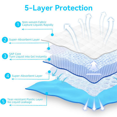 Instant Moisture Locking: These highly absorbent pads utilize advanced polymer technology to instantly turn urine into gel.